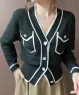 Áo khoác len len dệt kim phối viền màu
