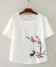Áo sơ mi cổ tàu họa tiết hoa đào