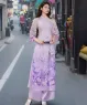 Bộ áo dài cách tân 4 tà họa tiết hồ điệp hoa lá