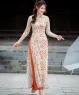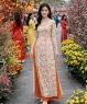 Bộ áo dài truyền thống họa tiết lá đa sắc