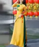 Bộ áo dài truyền thống lụa kết hoa hồng
