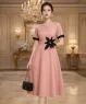Đầm lụa dáng dài cổ tròn đính hoa lớn