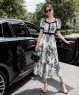 Đầm lụa dập nhún phối màu họa tiết cao cấp