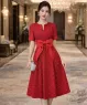 Đầm lụa tay ngắn cổ xẻ eo phối nơ