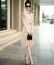 Đầm sơ mi lụa tay ngắn dập ly họa tiết caro