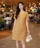 Đầm suông chữ A họa tiết chữ H tay ngắn