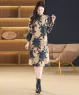Đầm suông len dệt kim Thu Đông họa tiết hoa lá