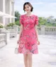 Đầm suông lụa cổ tròn tay ngắn họa tiết dây