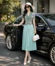 Đầm trung niên lụa gập ly cao cấp họa tiết ca rô