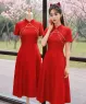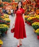 Đầm xòe cổ tàu xẻ cách điệu đính hạt