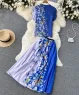 Set áo chân váy lụa dập ly họa tiết cổ lọ