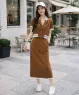 Set áo chân váy thun cổ vest phối đường viền